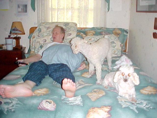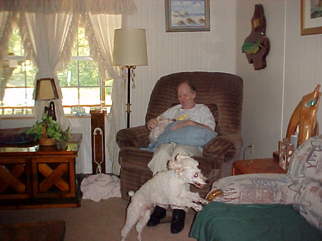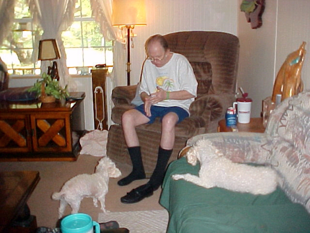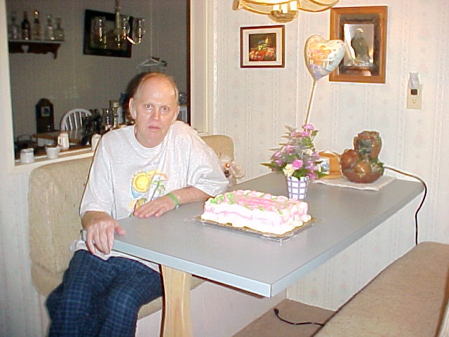 After feeding the boy's Danny took a good shower and our friends Mary, Pete & Carwe from up the street came down to have some Birthday Cake that I got for Danny because he was in the hospital on his birthday. Then Danny and C. J. laid down and went to sleep.