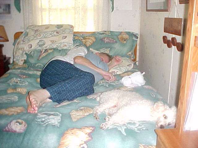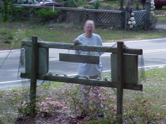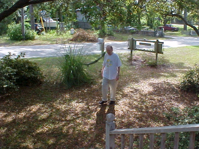 As a rule we always come home through the back deck BUT! this time Danny wanted out out front and me come back through the house and get him coming in the front door of his "ISLAND REST" which is in the sign.