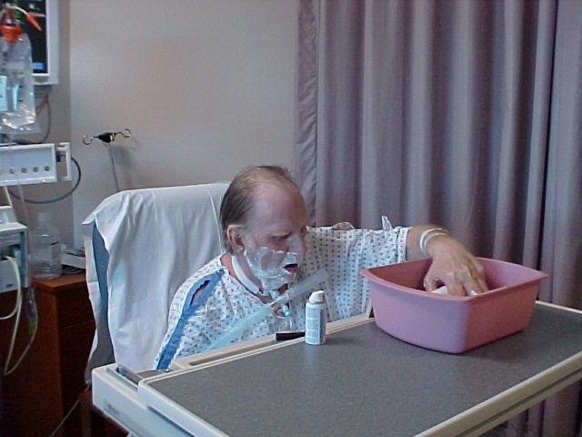 He had to go back to bed after that because he was so tired and then it was time for his meds which knocked him out, he gets disoriented from them. And get so frustrated because he can't talk or have what he wants. He wants ice & food and can't have either. He won't even let me put the phone to his ear now for someone to talk to him because he can't talk back.