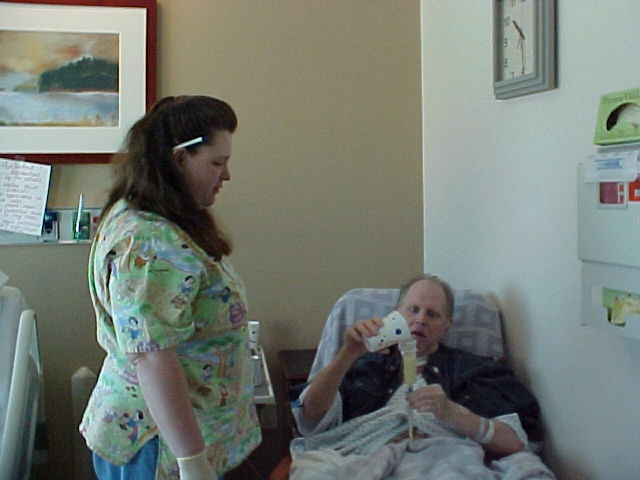 I got to the hospital about 9:30 AM at the same time as our son Johnny who came down from South Carolina to see his Dad.