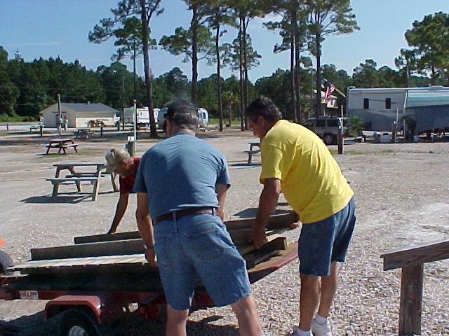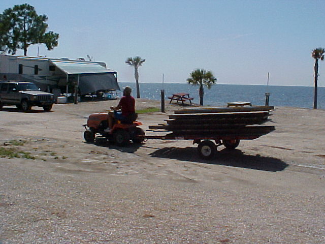 As Dennis loomed closer to the Gulf of Mexico, Mike and other helpers at the park started taking up the dock planking sections and storing them in the building not thinking that the water would ever reach the height that it did.