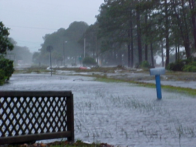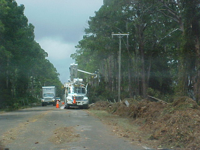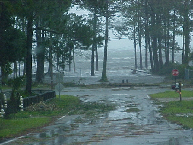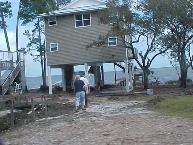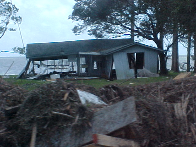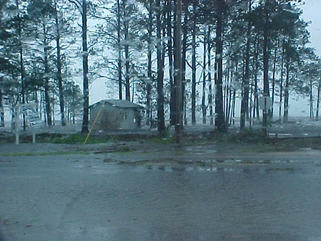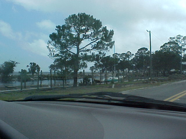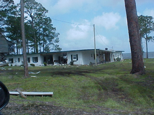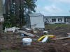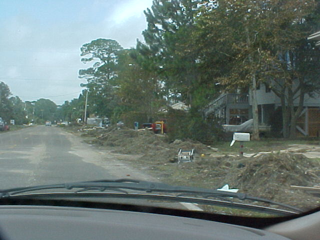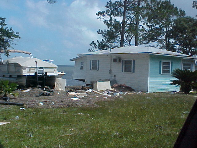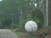 Now looking from the end of our street and going east toward Tallahassee. The people's yard and ditch area across the street beside us had water all up in it and there was a storage building that got washed out of place across the road from them on 98. Next some places for about the next 2 miles or so. I didn't get to get a picture of it, but to open the road back up some the state or county came through with a road grader and just shoved everything to the side's of the road. There was to much going on at the time we went by but the Lanark Marina was hit bad, The big ice machines and all other loose things ended up across the road and a lot of damage was done to the activity building. Power, Cable, Phone & Company's were out in force the next day. The oddest thing of all was to see the big baseball that had been in this persons back yard. There was just so much destruction all along the coast and our area is just a drop in the bucket.
