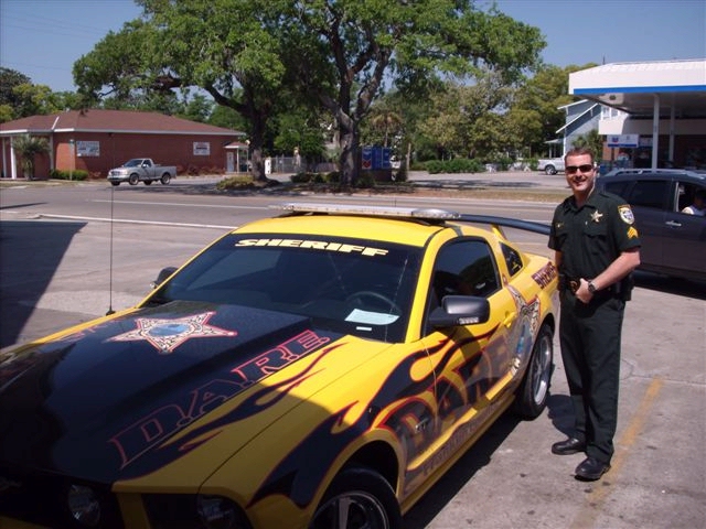 On the way home he stopped to get a Sub Sandwich and there was the D.A.R.E. car being driven by Sgt. Ryan Sandoval. He asked if he could get a couple of pictures of him and the car.