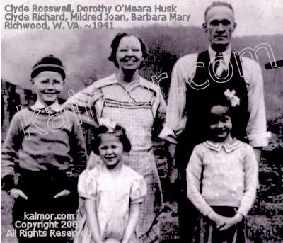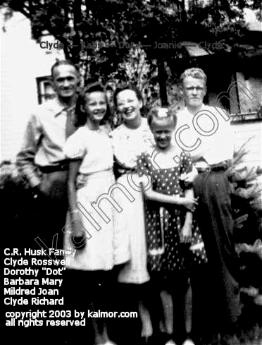 Group: Back row, Clyde Richard Husk Sr. & wife Dorothy Marie (Dot) O'Meara; Front row: Mildred Joan Husk, Barbara Susan (Sue) Wall & husband Clyde Richard Husk Jr.. Last: Clyde Richard Husk Jr. was a Draftsman Engineer at Union Carbide, Charleston, Kanawha Co. WVa.  |
