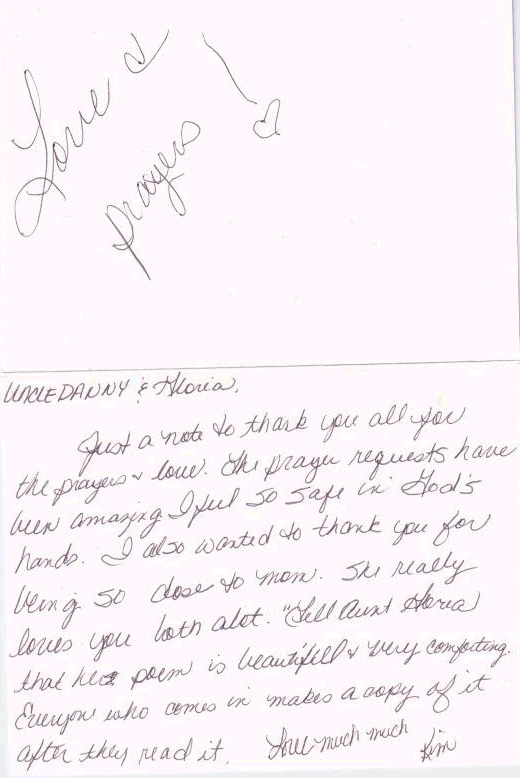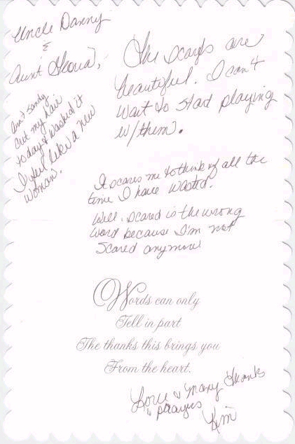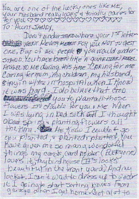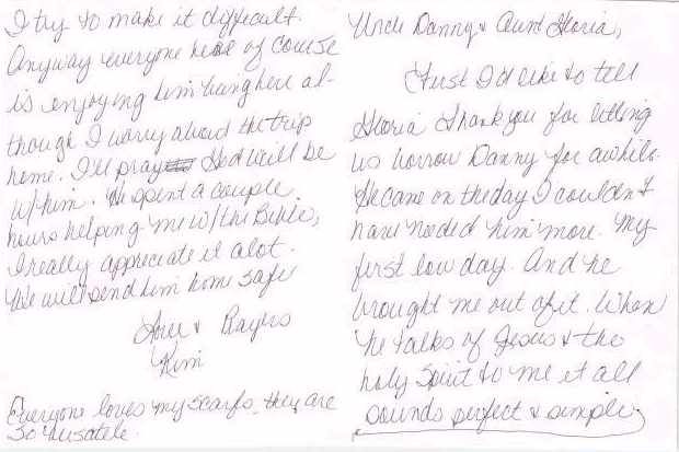 Cards received by Danny & Gloria Husk from Kim during her illness.