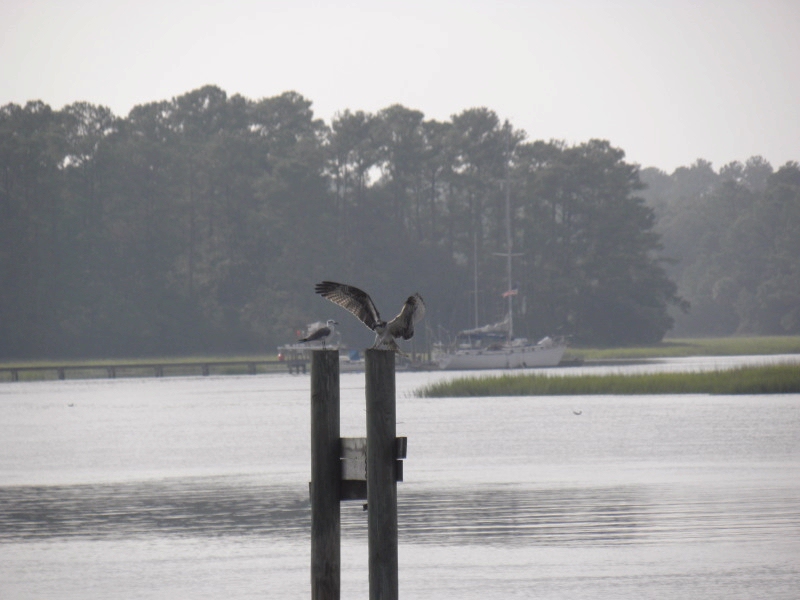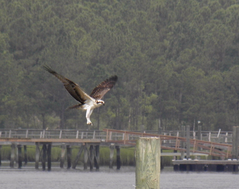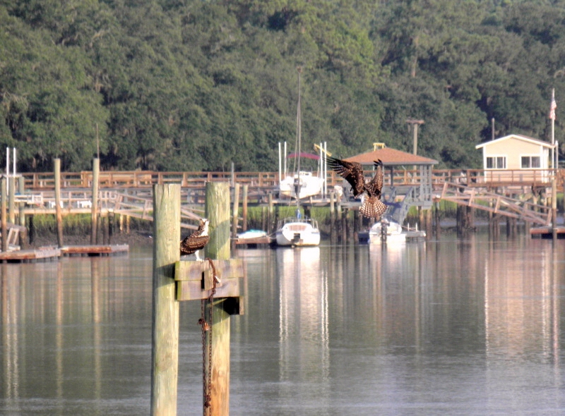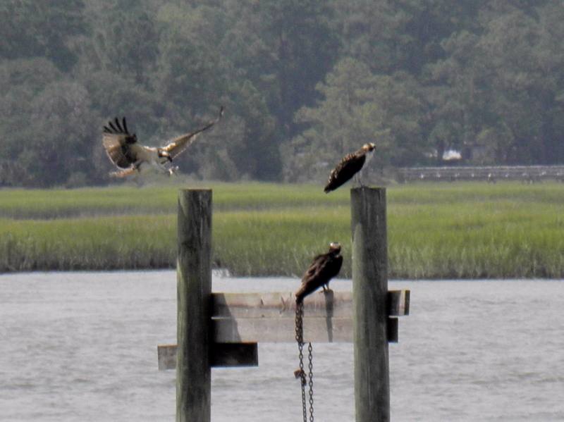 The last photo is Henrietta making a perfect landing on the piling down the way that had the Sea Gull on it yesterday....Lookin' good young lady!! Stay tuned for more......as long as they are around!!