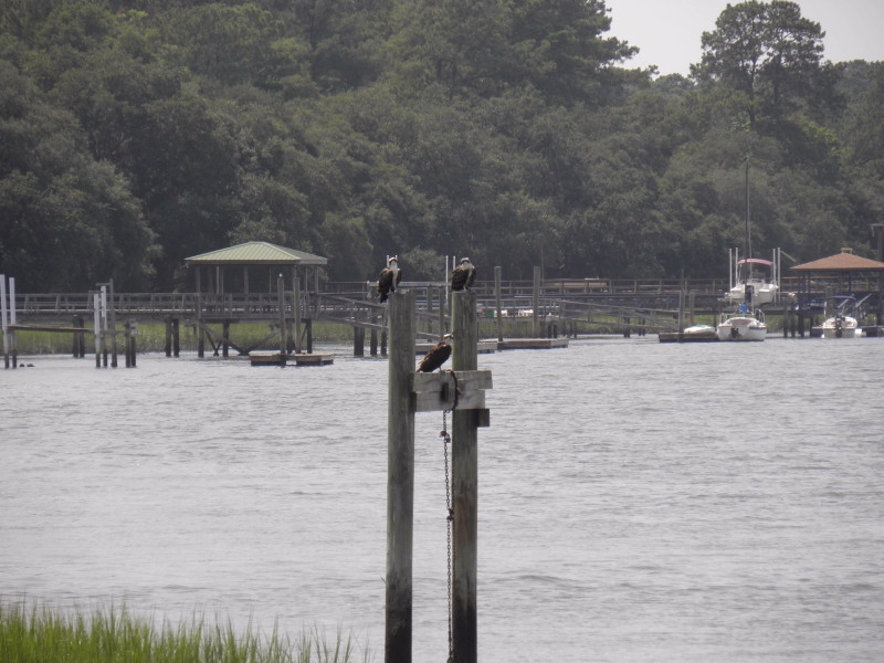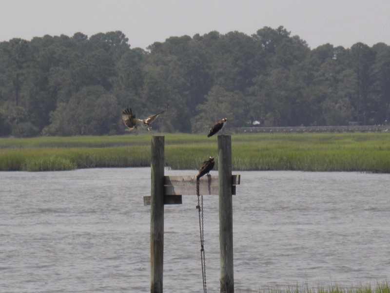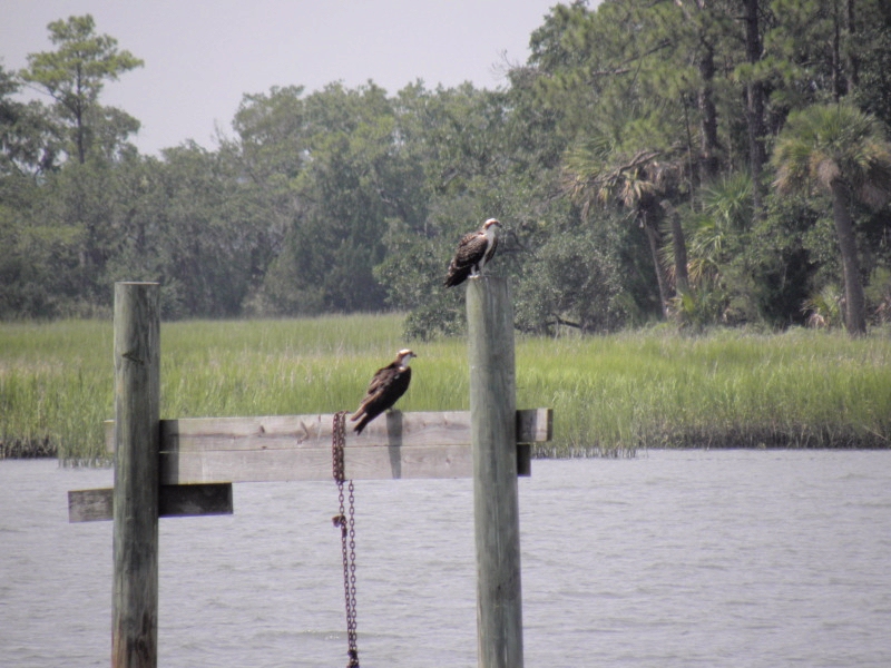 The "Kids" were perched on the uprights holding the nest watching along with me......they will probably migrate back to Florida in early September....hope they learn how to fish before then?? Happy Tuesday!!